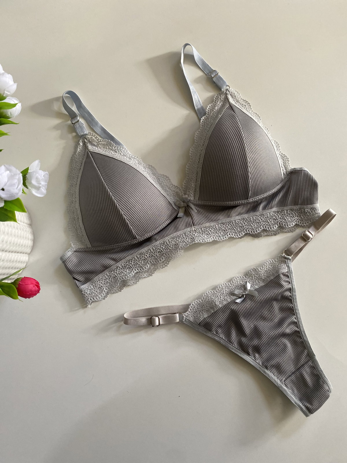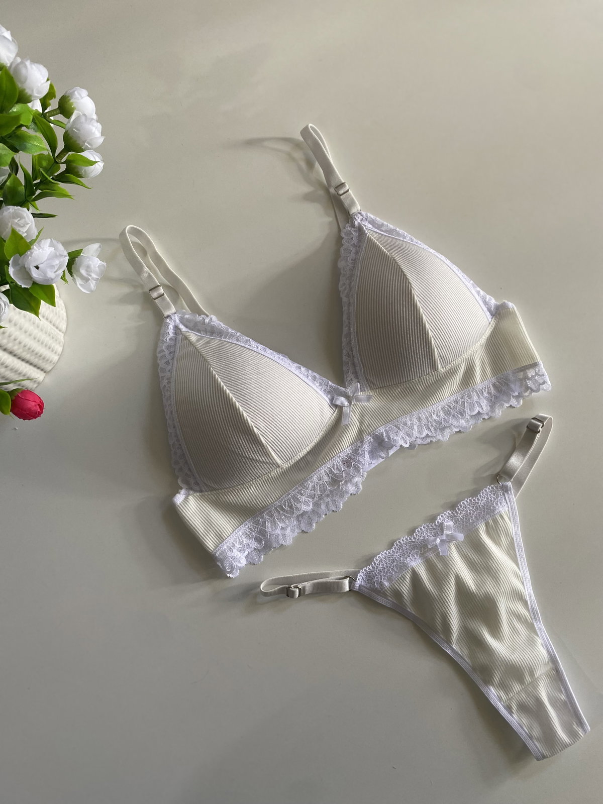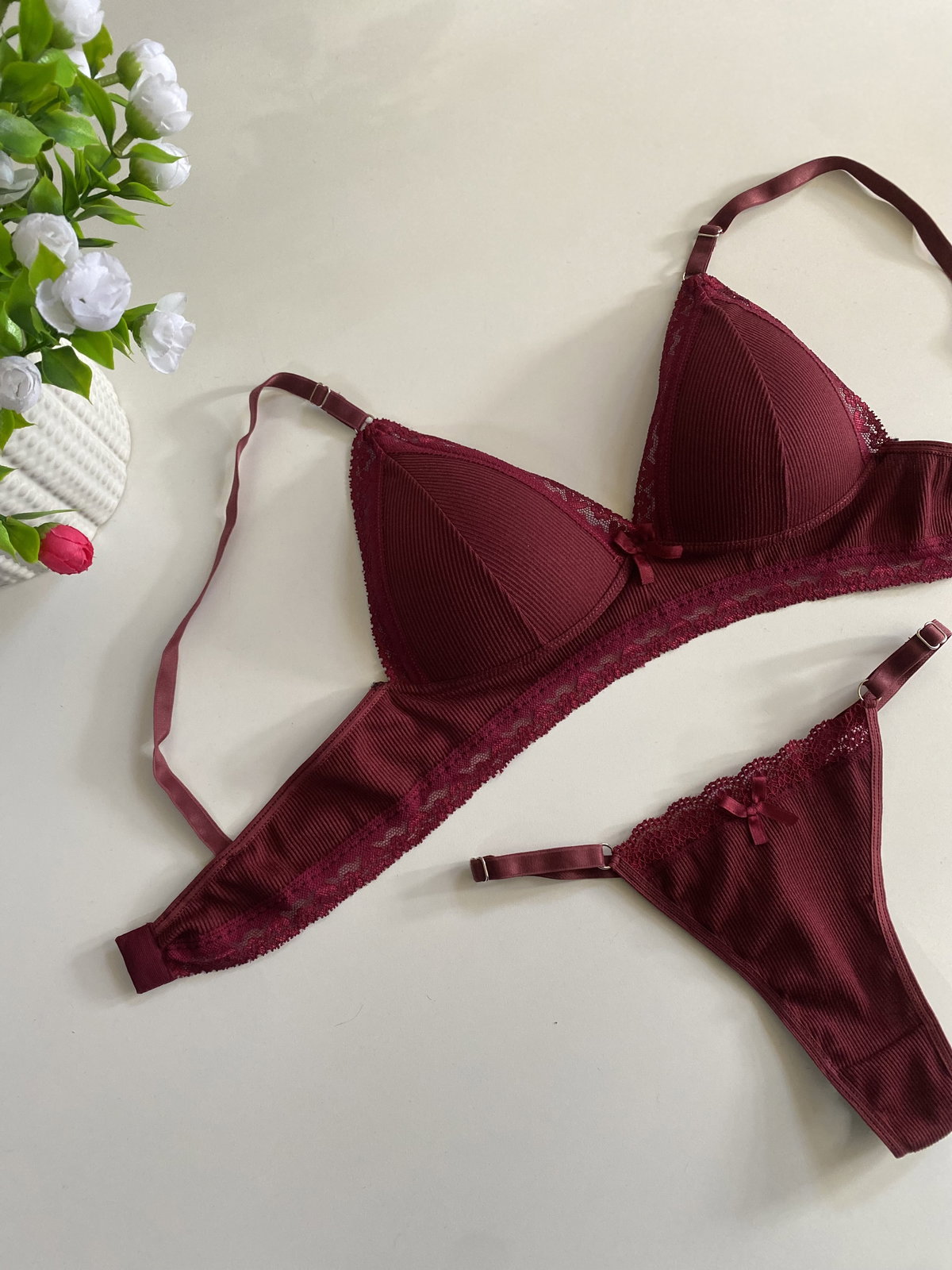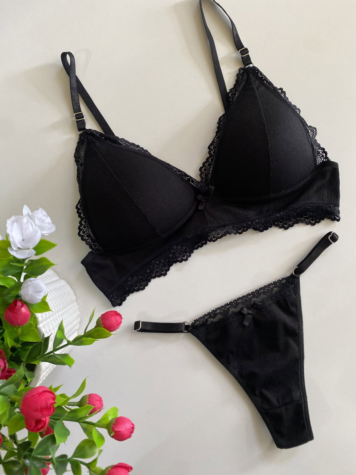 Triángulito de Morley con encaje taza regulables tanto corpiño como bombis