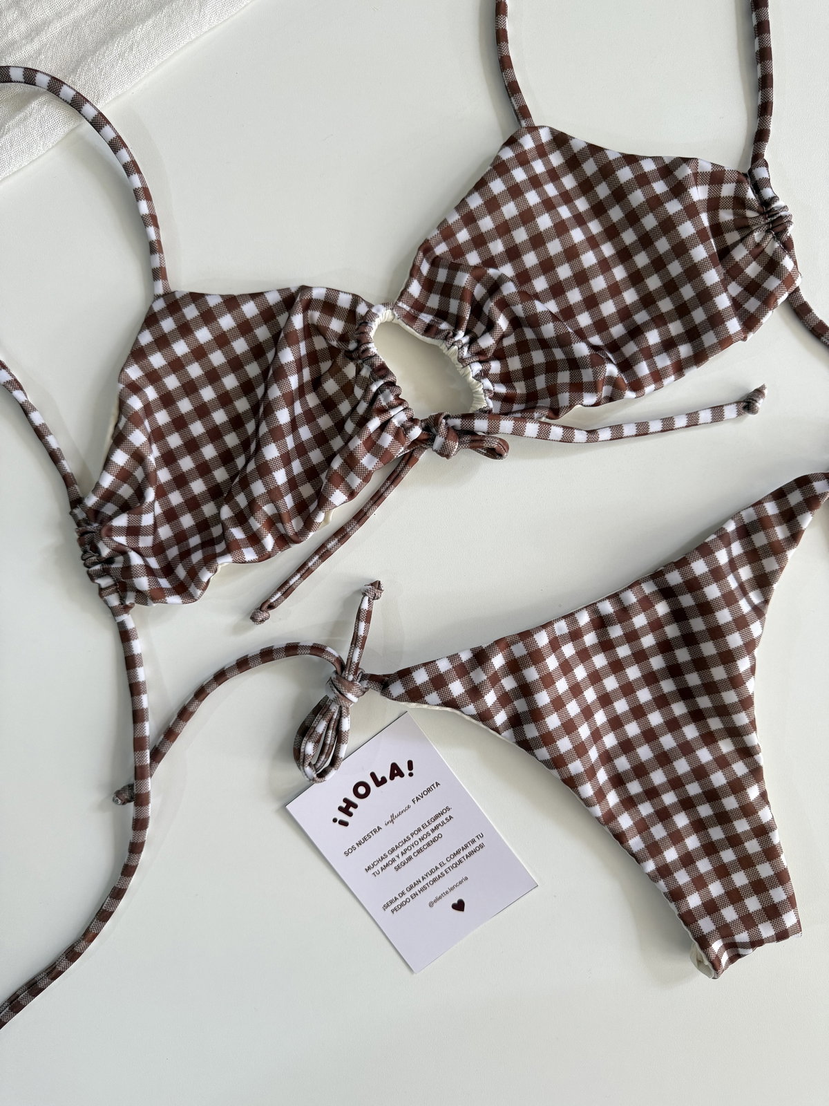 Bikini cuadrille , corpiño para atar, Bombis para atar