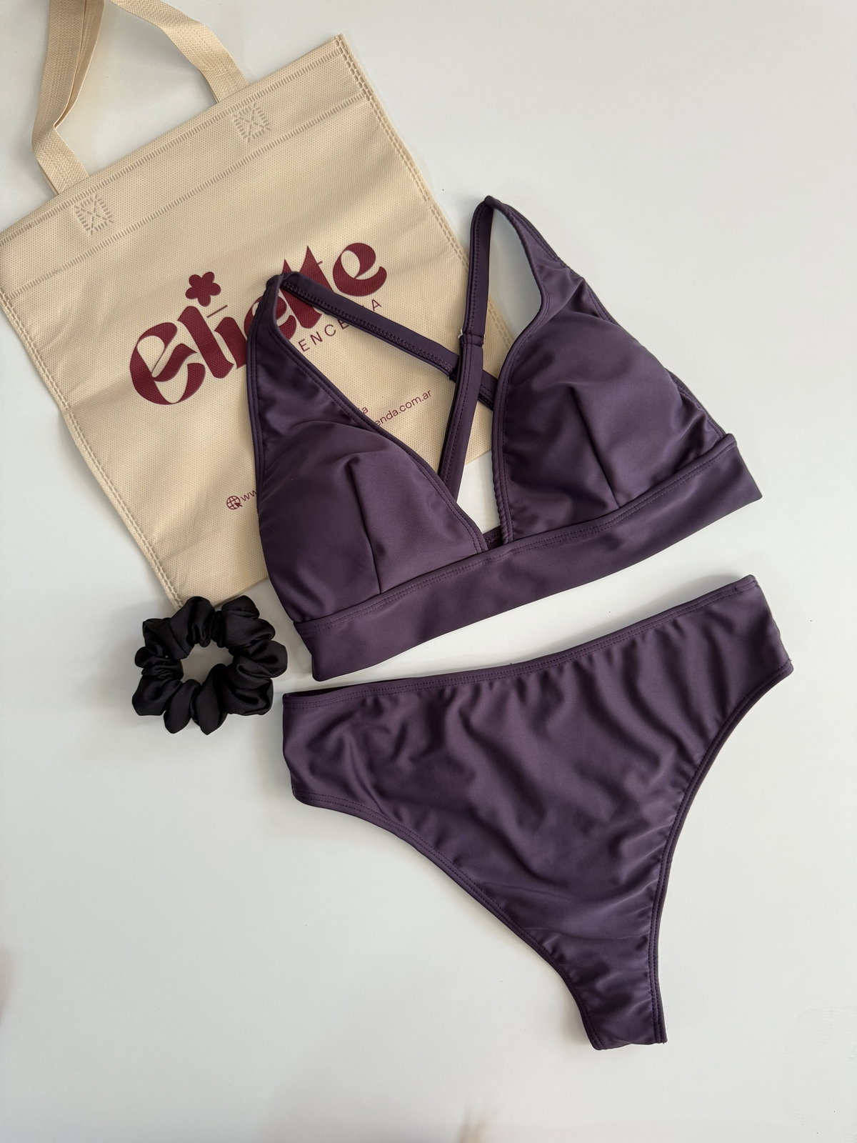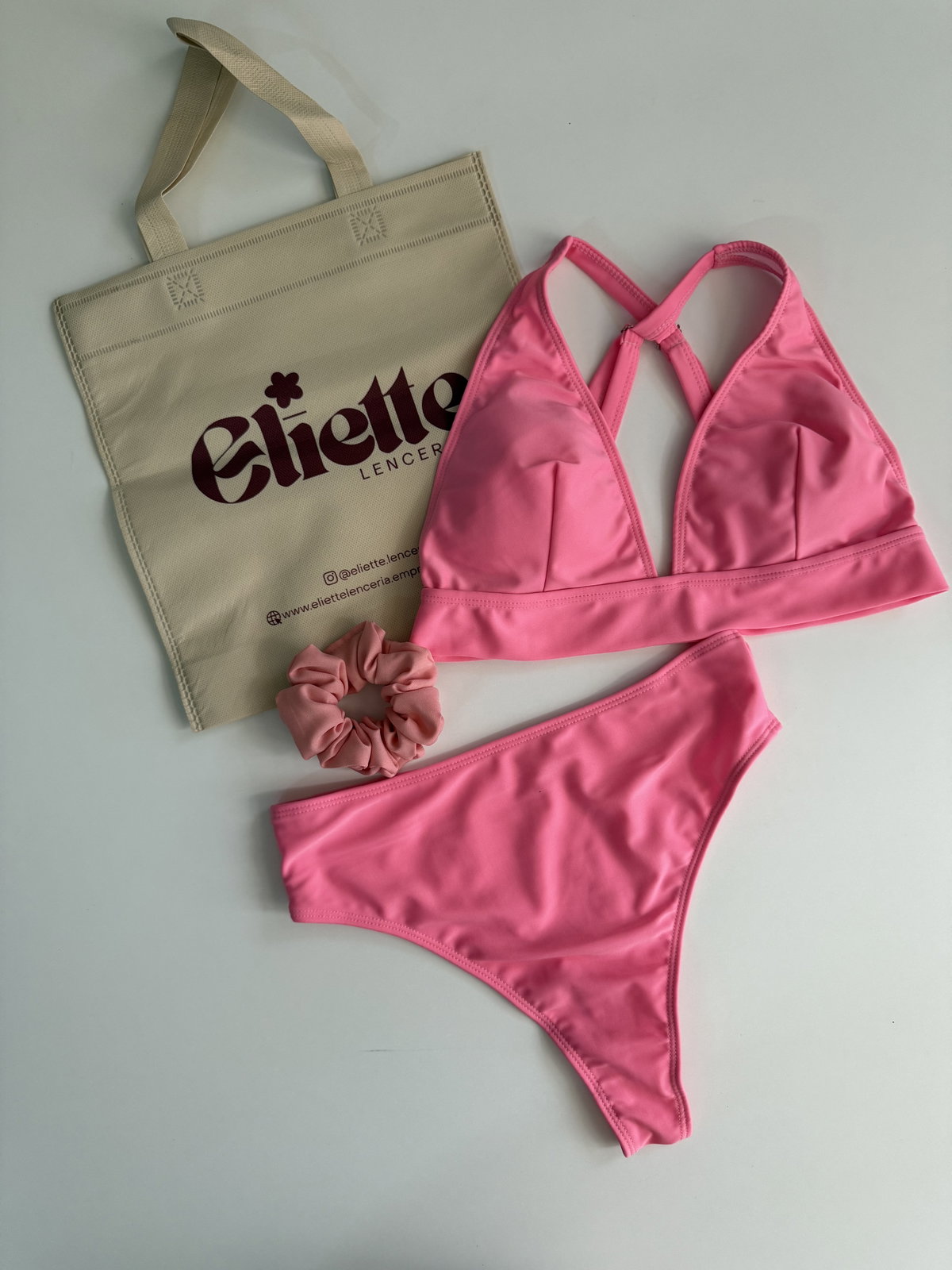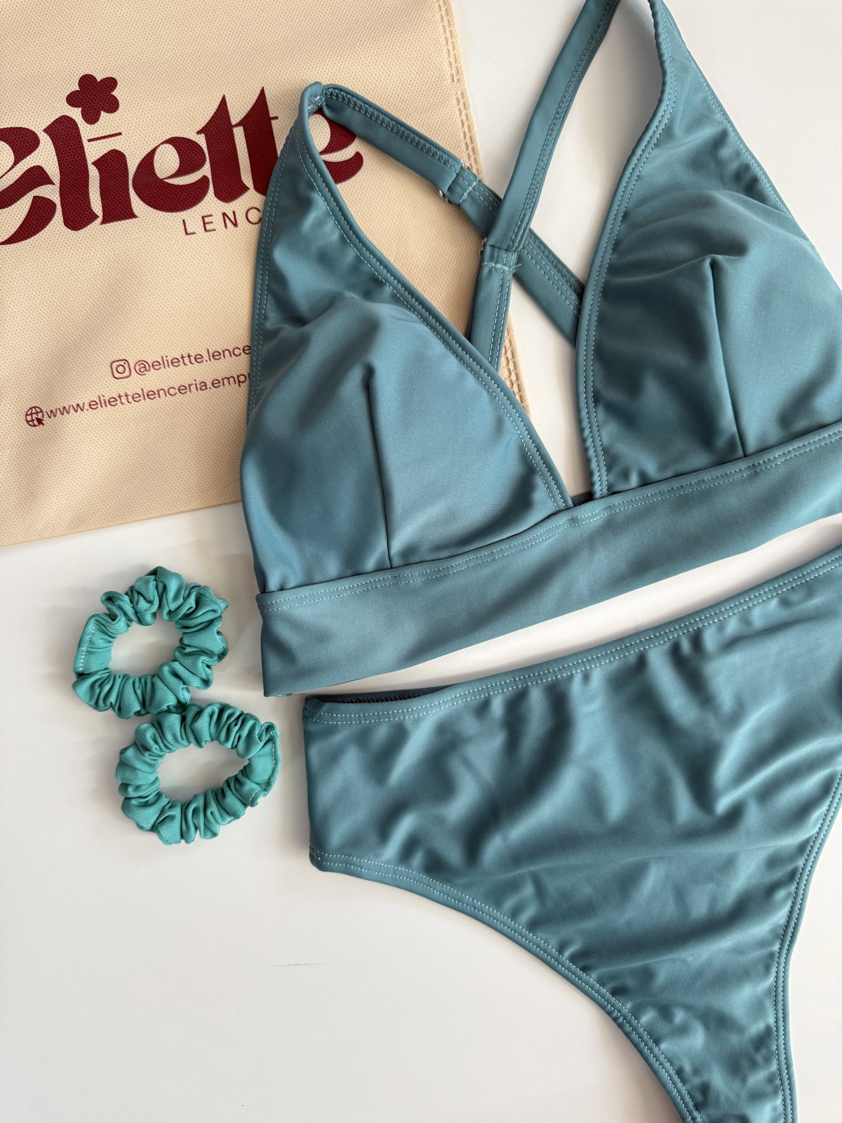 Bikini con tazas desmontables , espalda cruzada regulable , Bombis tiro alto colaless
