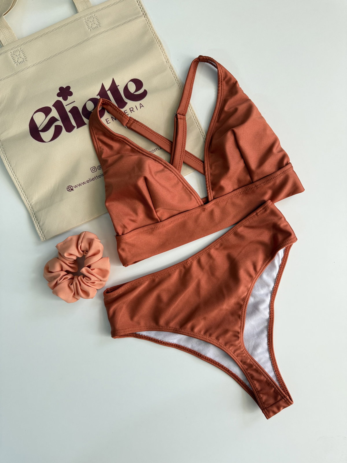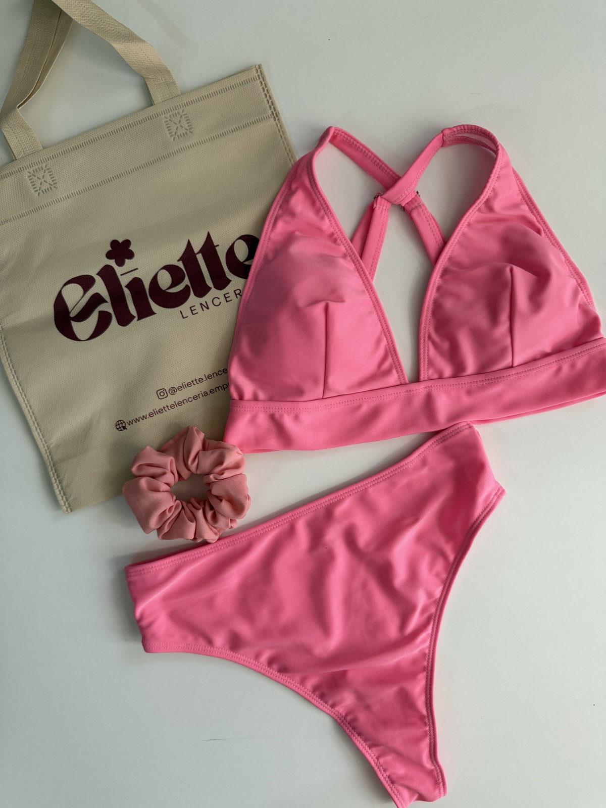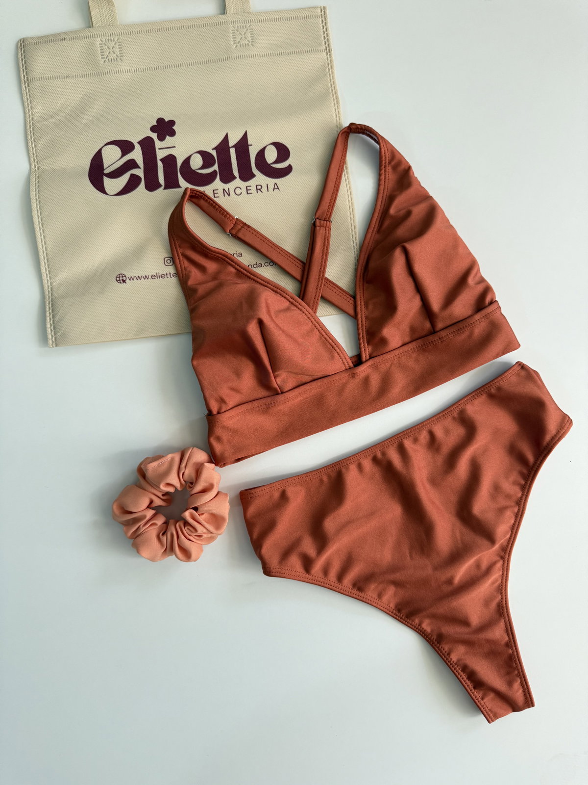 Bikini con tazas desmontables , espalda cruzada regulable , Bombis tiro alto colaless
