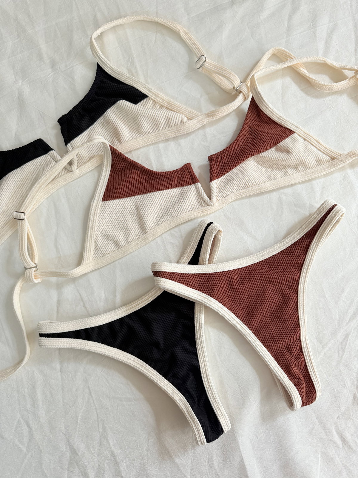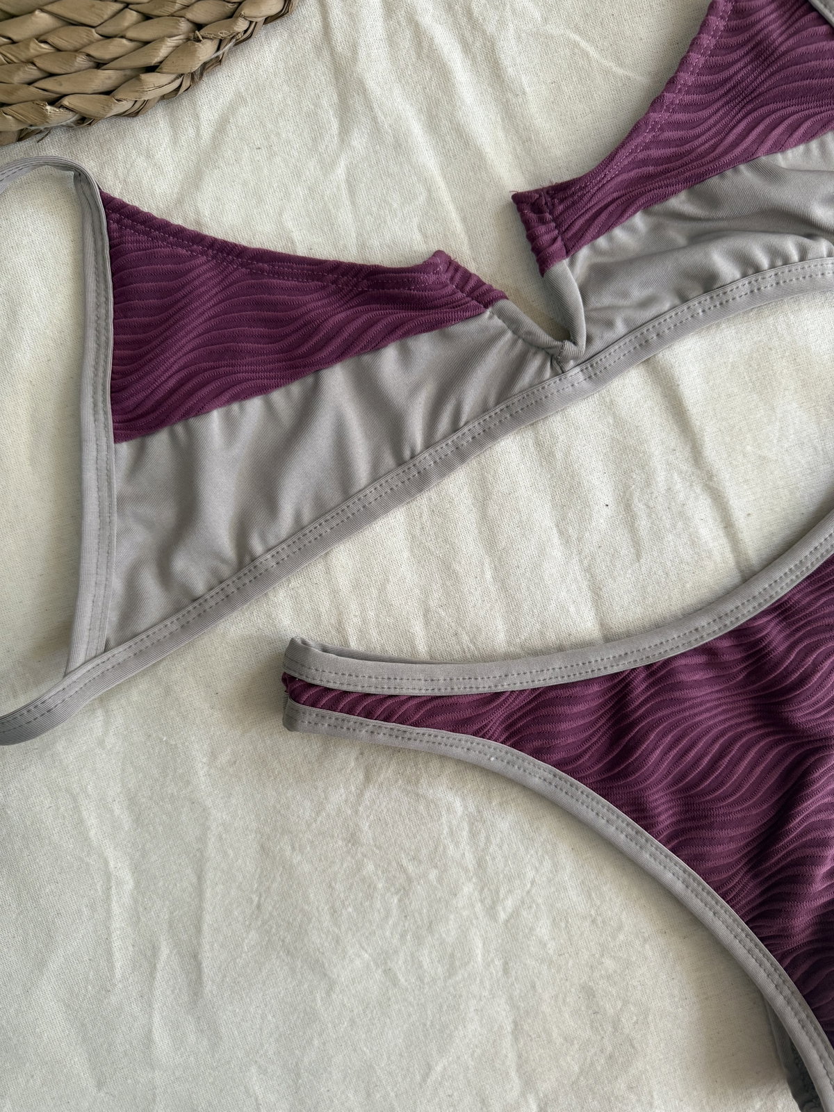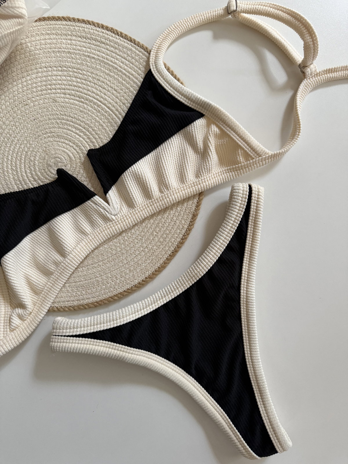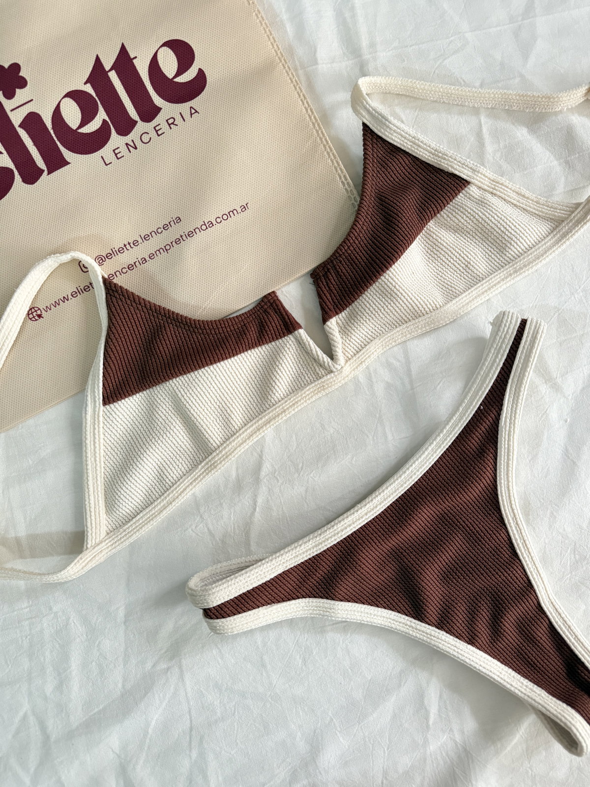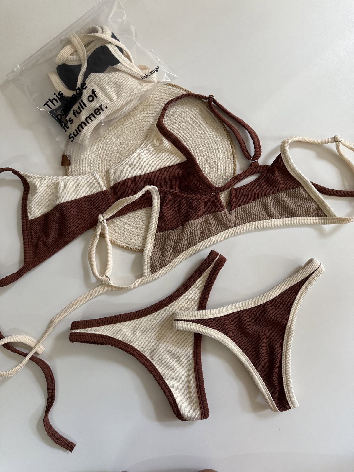 Bikini texturada combinada corte V ,tiras regusbles , Bombis entera colaless